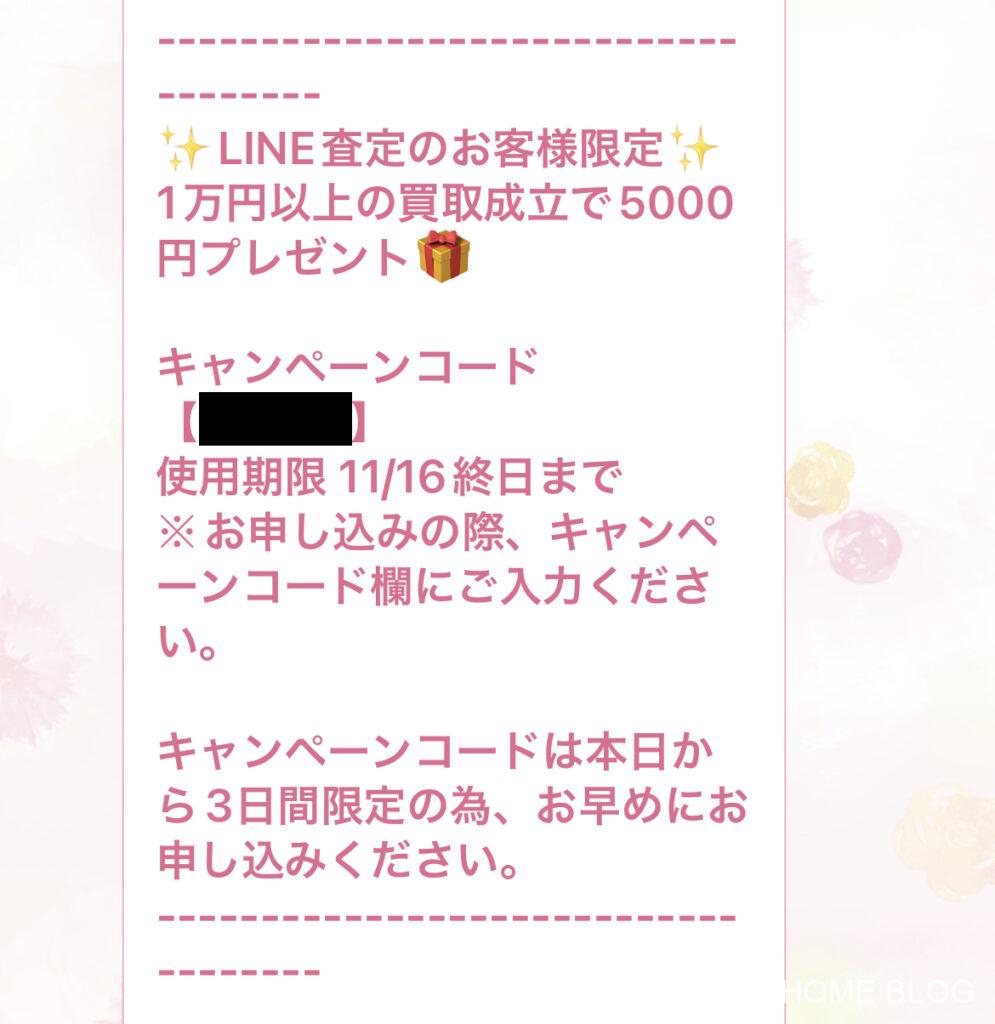 RECLOの公式LINEアカウントから限定配布される買取金額が、キャンペーンコードです。